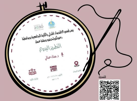 أقامت الكلية الجامعية بصامطة ممثلةً في قسم الاقتصاد المنزلي ورشة عمل بعنوان "التطريز اليدوي"، نفذتها الدكتورة سناء عناني. إذ يُعد التطريز من أعرق فنون زخرفة القماش، والذي كان يستعمل في الحضارات القديمة. و لايزال يُعد هذا الفن من أفضل أنواع تصميم