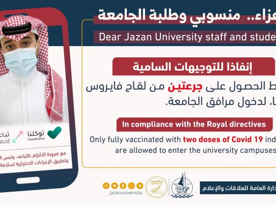 سياسة الخصوصيةنحيطك علماً بأن موقع جامعة جازان يقوم بإستخدام خاصية ملفات تعريف الإرتباط لتلبية متطلبات الأمان الاساسية ولتوفير سهولة الوصول و تجربة مستخدم أفضل.