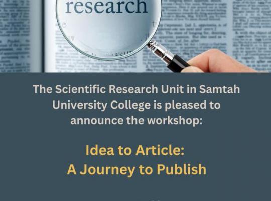A workshop entitled "Idea to article: A journey to publish" at the Applied College in Samtah and the University College in Samtah (formerly).