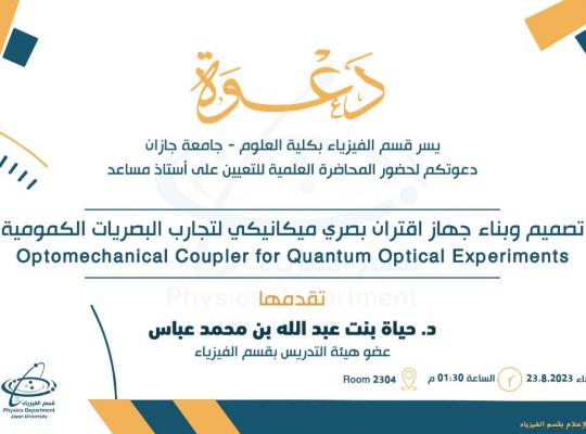 Seminar entitled " Optomechanical Coupler for Quantum Optical Experiments"
