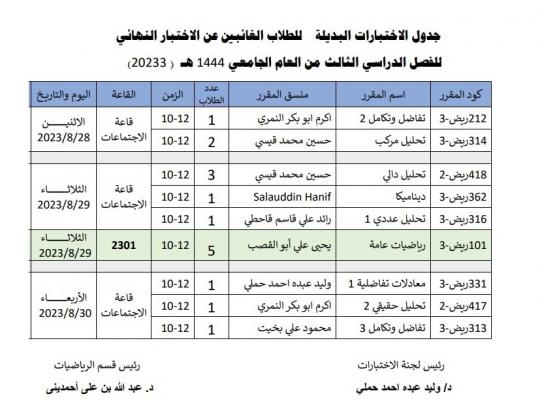 جدول الاختبارات النهائية البديل ة 2023 - ه 1444 الفصل الدراسي الث الث للعام الجامع