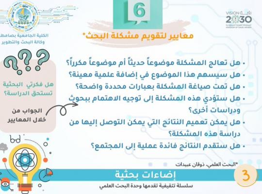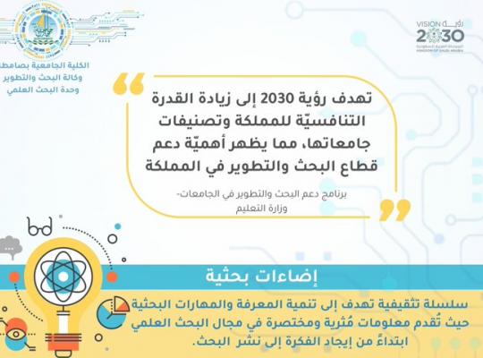 An educational series entitled "Research Illuminations" aimed at developing knowledge and research skills at the Applied College in Samtah and the University College in Samtah (previously)