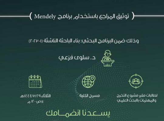 A training workshop entitled "Documenting references using the Mendeley program" at the Samtah Applied College and Samtah University College (formerly)