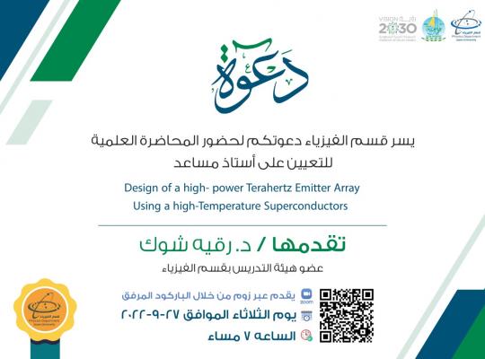 Seminar entitled " Design of a high- power Terahertz Emitter Array Using a high-Temperature Superconductors"