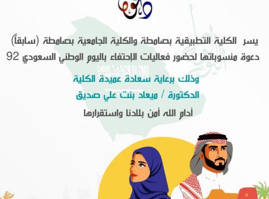 Under the patronage of the Dean of the College, the Samtah Applied College and the former Samtah University College are pleased to invite you to attend the 92nd Saudi National Day Ceremony
