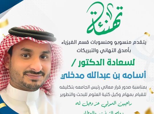 College of Science at Jazan University is proud to announce the appointment of Dr. Osama Madkhali; Assistant Professor at Physics Department, as the vice-dean for Scientific Research and Development. On this occasion, faculty of Physics Department