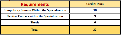 The completion of a minimum of 33 credit hours in 3 semesters is required to earn a master's degree