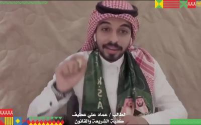 A part of the participation of students of the College of Sharia and Law on the occasion of the 90th National Day. We all, with your glory, stood up to the summit 90