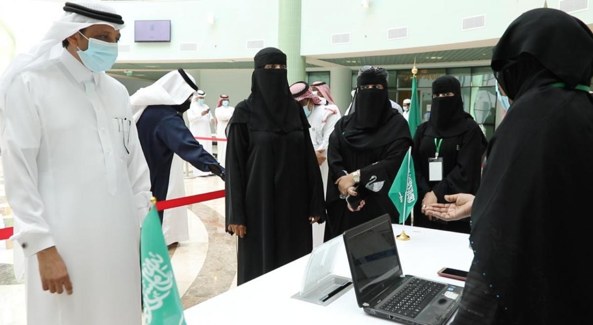 The Vice Dean Student Affairs (Female Section), Prof. Dr. Aisha bin Hassan Zikri, inaugurated the “Ninety Devices” initiative that was conducted by the University College Sabya this Tuesday, in the lobby of the Faculty of Computer Science and Information Systems Campus.