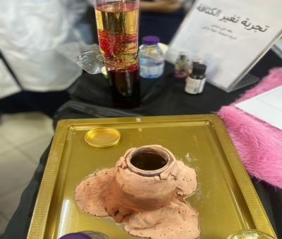 The employees of the Faculty of Science were received by the school principal, Ms. Amna Daghriri, the chemistry teacher, Ms. Sana Madkhali, and the head of community partnership in the school, Ms. Amira Al-Shami. The school students carried out some activities, and they exchanged ideas and projects. The college students explained and implemented some Practical experiments, such as making cosmetics and moisturizers from natural, non-harmful materials, explaining essential oils, their benefits, their medical uses, and the method of their extraction. One of the students spoke about the branches of chemistry and the areas of work of chemists. The students on both sides carried out some interesting practical experiments, such as changing density, the volcano, and the balloon inflation experiment.