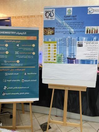 Under the patronage of Her Excellency the Vice Dean of the College of Science - Female Section, Dr. Amna Shamakhi, the Student Activity Unit of the Chemistry Department organized a field visit to Al-Jaradiyah Secondary School in Samtah Governorate to mark the Arab Week of Chemistry with the participation of students and teachers of the school.