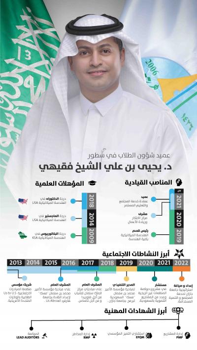 أبنائي وبناتي طلاب وطالبات جامعة جازان , لقد شرفني الله وفريق العمل بالعمادة بأن نكون معكم ، و بأذن الله سنكون داعمين لكم من أجل أن نرقى سوياً بجامعتنا إلى مصاف التميز والعالمية .