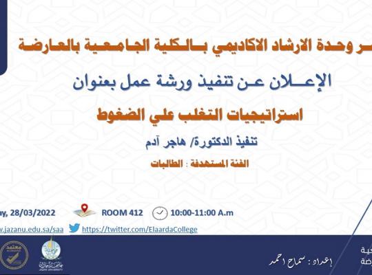 الإعلان عن تنفيذ ورشة عمل بعنوان (استراتيجيات التغلب علي الضغوط)