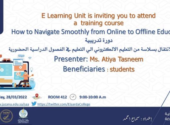 دورة تدريبية (كيفية الإنتقال بسلاسة من التعليم الالكتروني الي التعليم في الفصول الدراسية الحضورية)