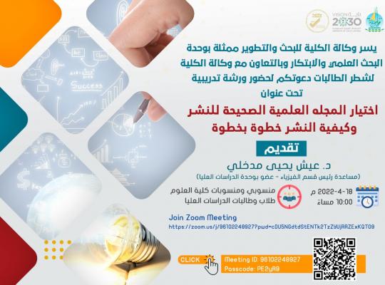 ورشة عمل بعنوان " اختيار المجلة الصحيحة للنشر وكيفية النشر خطوة بخطوة"