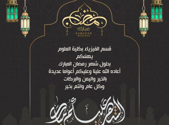 تهنئكم لجنة العلاقات العامة والإعلام بقسم الفيزياء بمناسبة حلول شهر رمضان المبارك وكل عام وانتم بخير