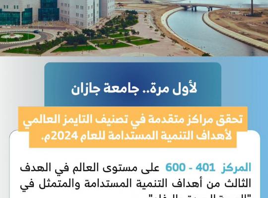 جامعة جازان تحقق مراكز متقدمة في تصنيف التايمز العالمي لأهداف التنمية المستدامة