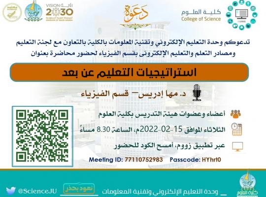 محاضرة بعنوان "استراتيجيات التعليم عن بعد"