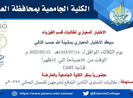 اعلان عن موعد (الاختبار المعياري لطالبات قسم الفيزياء)
