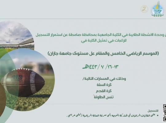 التسجيل في الموسم الرياضي الخامس و المقام على مستوى جامعة جازان