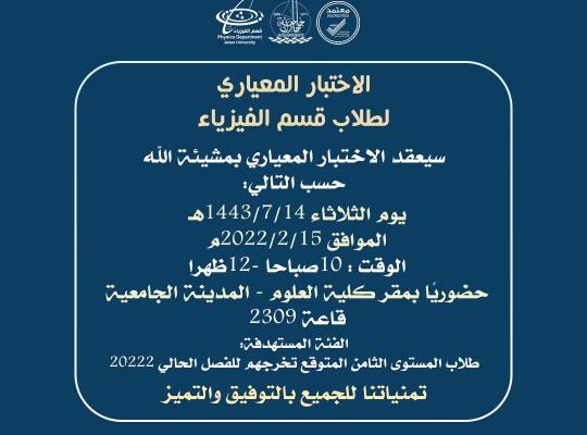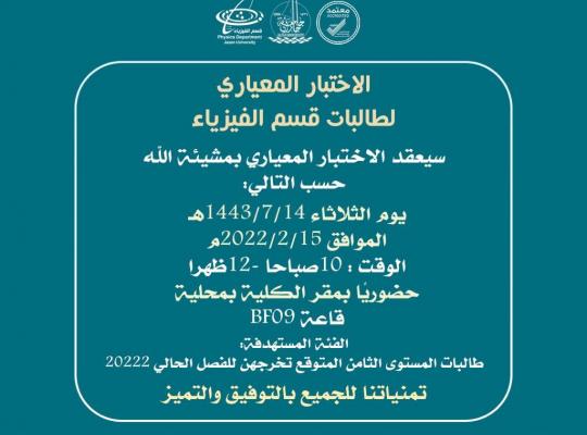الاختبار المعياري لطلاب قسم الفيزياء -شطر الطالبات