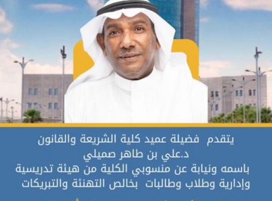 #تهنئة يتقدم فضيلة عميد #كلية الشريعة والقانون دعلي بن طاهر صميلي باسمه ونيابة عن منسوبي الكلية بخالص التهنئة والتبريكات لسعادة الأستاذ الدكتور #محمد_أبوراسين بمناسبة صدور الموافقة من المقام السامي بتكليفه برئاسة جامعة جازان @JazanUniversity