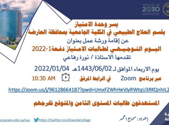 يسر وحدة الامتياز عن اقامة ورشة عمل ((اليوم التوجيهي لطالبات الامتياز دفعه 1 -2022))
