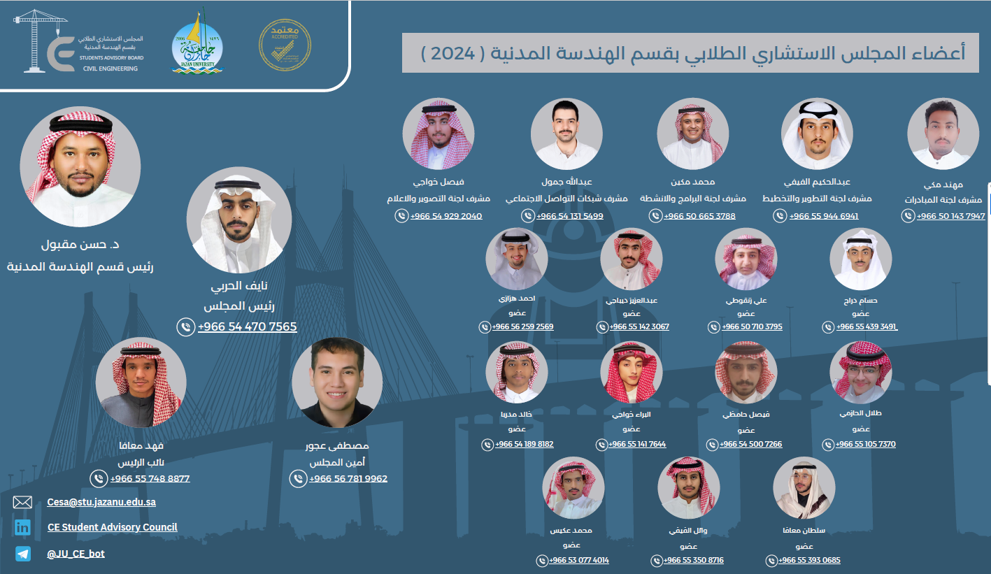 أعضاء المجلس الاستشاري الطلابي لقسم الهندسة المدنية
