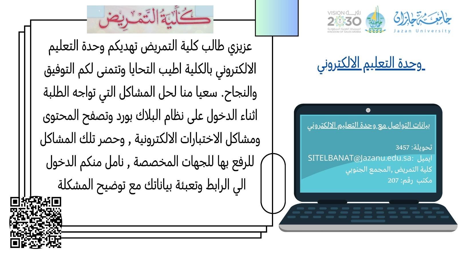 | خلق بيئة تفاعلية ومتميزة للتعليم الالكتروني وتقنية المعلومات بالكلية. |
