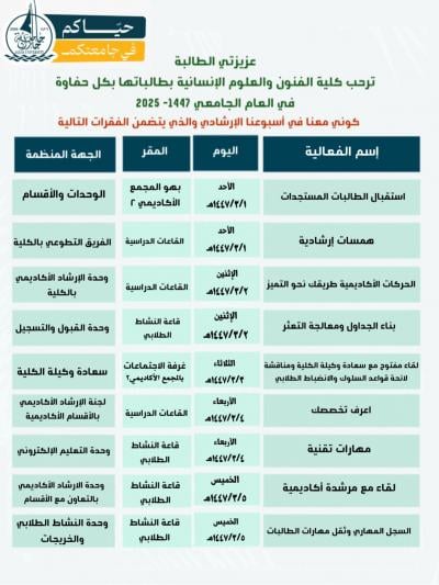 أعضاء هيئة التدريس دليل أعضاء القسم كلمة رئيس القسم المرحلة الجامعية نواتج التعلم توصيف البرنامج خصائص خريج البرنامج دليل الطالب توصيف المقررات إصدار 2025 الخطة الدراسية التواصل الفعاليات والانشطة الاعلانات تهنئات أتعهد بعمل ترجمة للمحتوى للغة الإنجليزية خلال يومين عمل تم تجهيز الترجمة وسيتم تنزيلها مع النسخة العربية الصورة الصورة الصورة الصورة الصورة الصورة الفعاليات