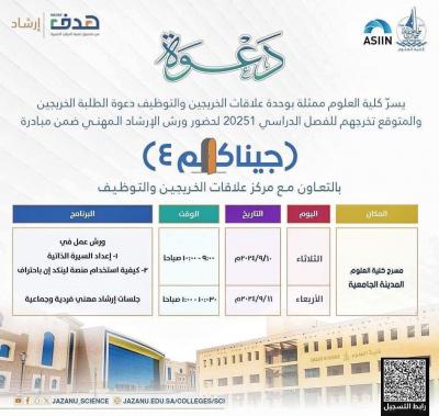 تعزيز قدرات الخريجين من خلال تنمية المهارات المهنية والتأهيل الوظيفي، وتوفير بيئة تفاعلية توجههم لسوق العمل.