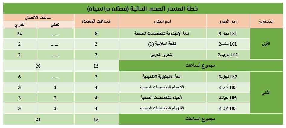 يُعد برنامج المسار الصحي بمثابة القلب النابض للكلية حيث يعنى بتدريس مبادئ وأساسيات المواد العامة )كيمياء – أحياء – فيزياء( واللغة الإنجليزية لطلاب وطالبات المسار الصحي بالجامعة بالتنسيق والمتابعة مع الأقسام الاكاديمية المعنية وفيه يتم وضع الخطط المستقبلية للارتقاء بمستوى الأداء الأكاديمي في إطار تفاعلي يخدم رؤية ورسالة الجامعة . كذلك يحرص البرنامج على توفير بيئة أكاديمية ملائمة لأعضاء هيئة التدريس وطلاب وطالبات المسار الصحي بالجامعة لضمان الارتقاء بالعمل الأكاديمي. كما يختص بتطبيق أحدث طرق التدريس والاستفادة من الوسائل التعليمية التقليدية والمبتكرة واستخدام طرق التقييم الحديثة والمختلفة. كما يعمل على توفير بيئة تعليمية متميزة للطلاب حتى يتمكن الطالب أوالطالبة من التعرف على القدرات والمهارات التي يتطلبها كل تخصص صحي، وبذلك يصبح الطالب والطالبة في وضع جيد لاتخاذ القرار المناسب قبل اختيار التخصص الذي يرغب بالتوجه إليه، والذي يؤهله إلى سوق العمل بعد تخرجه. يؤهل البرنامج الطلاب والطالبات للالتحاق بالكليات الآتية: الطب , الصيدلة , طب الاسنان , الصحة العامة وطب المناطق الحارة , العلوم الصحية التطبيقية والتمريض