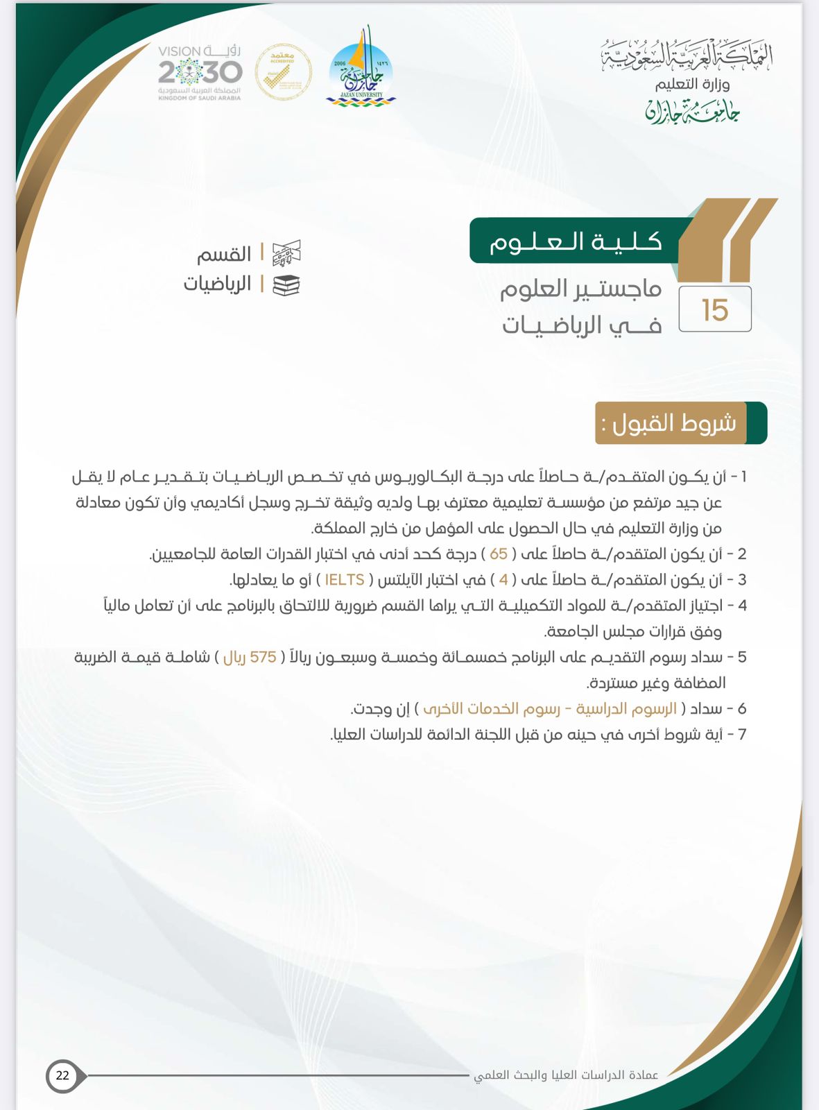 - شروط القبول لبرنامج ماجستير العلوم في الرياضيات