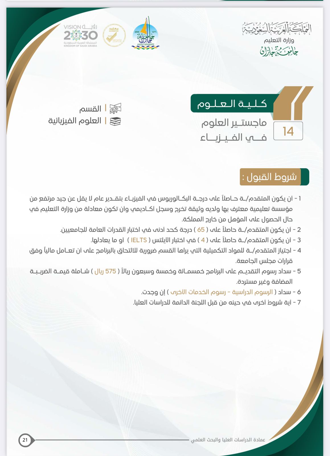 - شروط القبول لبرنامج ماجستير العلوم في الفيزياء