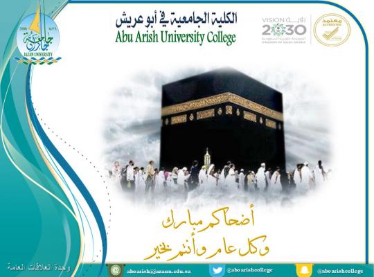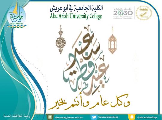 الكلية الجامعية بأبي عريش تعايد منسوبيها برعاية سعادة عميدة الكلية الجامعية بأبي عريش د. آسيا علي الشيخ أقامت وحدة العلاقات العامة والإعلام بالكلية حفل معايدة لمنسوبيها بمناسبة عيد الفطر المبارك تعزيزًا لتقوية الترابط بينهم راجين أن يتقبل الله من