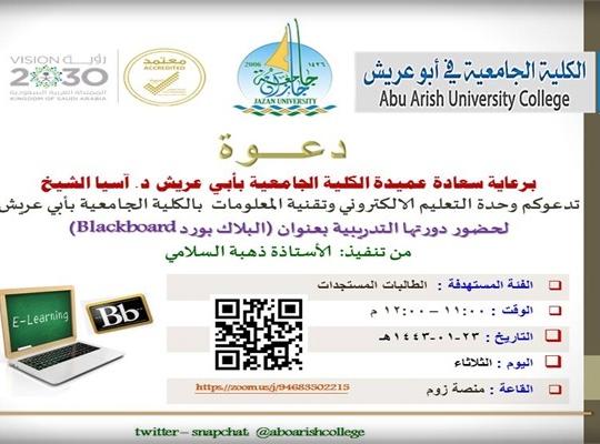 حرصاً من الكلية على تقديم أفضل الخدمات التي تساعد الطالبات على التعليم المدمج في ظل جائحة كورونا، وبرعاية كريمة من سعادة عميدة الكلية د/ آسيا علي الشيخ نفذت وحدة التعليم الإلكتروني وتقنية المعلومات بالتعاون مع وحدة الارشاد دورة تدريبية وتعريفية