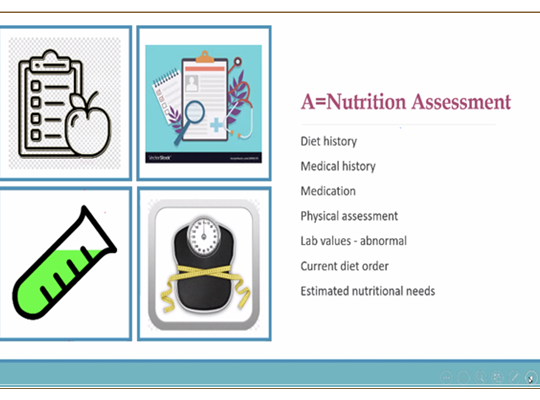 نفذت وحدة الخريجات والتدريب التعاوني بالكلية فعالية بعنوان (How to Apply a Proper Nutrition Care Process) وذلك يوم الاحد 1442/7/9هـ. بحضور عميدة الكلية د. آسيا علي الشيخ ووكيلة الكلية للشؤون الأكاديمية د. الشيماء حمودة قدمتها أ. سماهر حكمي المحاضرة