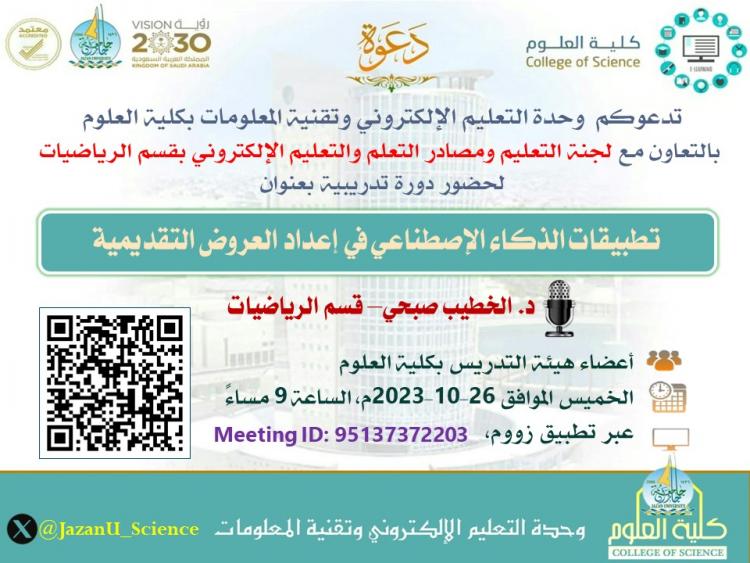 تطبيقات الذكاء الاصطناعي فى إعداد العروض التقديمية .... دورة تدريبية بكلية العلوم