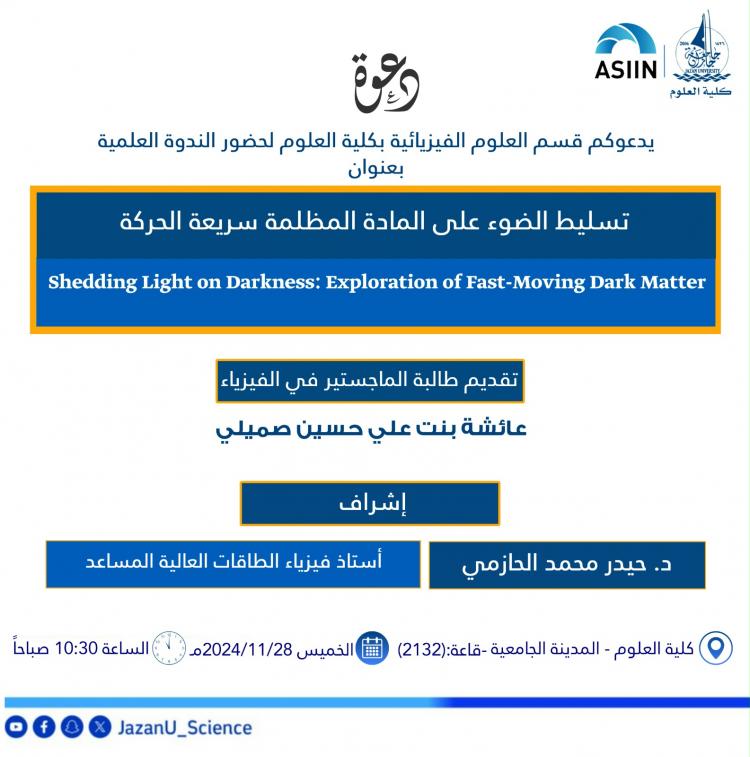 ندوة علمية بعنوان تسليط الضوء على المادة المظلمة سريعة الحركة بكلية العلوم