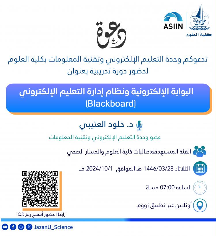 البوابة الإلكترونية ونظام إدارة التعليم الإلكتروني (البلاكبورد)... دورة تدريبية بكلية العلوم شطر الطالبات