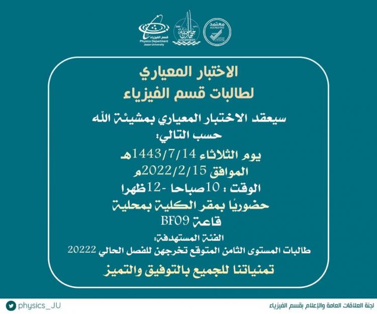 الاختبار المعياري لطلاب قسم الفيزياء -شطر الطالبات