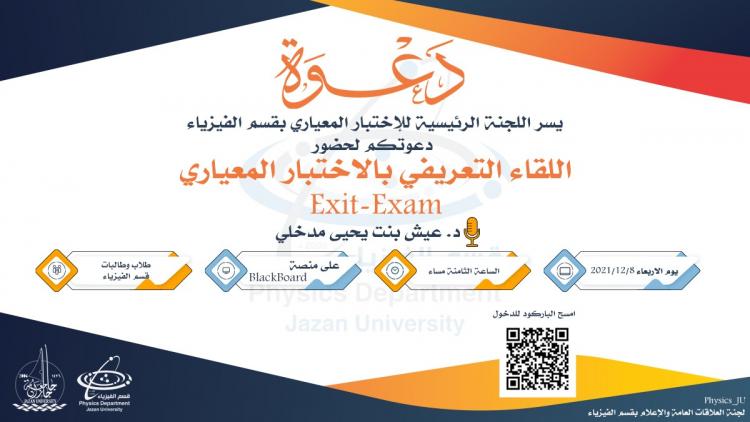 اللقاء التعريفي بالاختبار المعياري ( خريجي وخريجات قسم الفيزياء بكلية العلوم وفروع الكليات الجامعيه المستوى السابع والثامن)