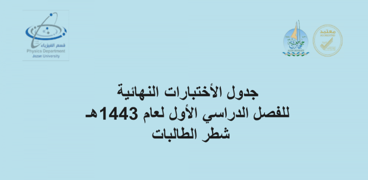 جدول الاختبارات النهائية للفصل الدراسي الاول للعام الجامعي 1443/1442هـ ( شطر الطالبات )..
