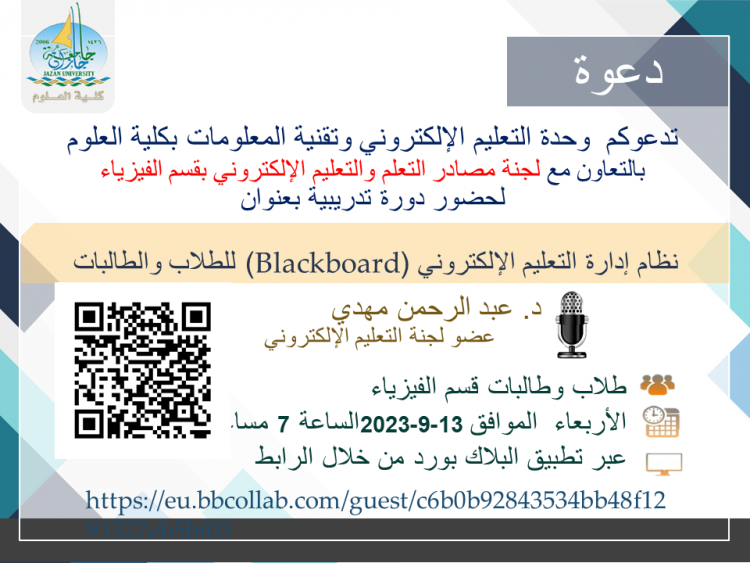 محاضرة لطلاب وطالبات القسم بعنوان "نظام أدارة التعليم الإليكتروني Blackboard"