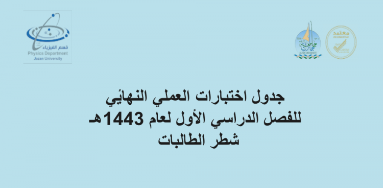جدول اختبارات العملي النهائي للفصل الدراسي الأول لعام 1443هـ شطر الطالبات
