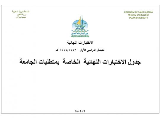 جدول الاختبارات النهائية