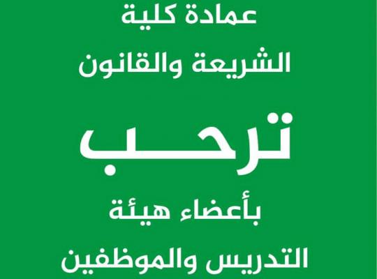عمادة كلية الشريعة والقانون ترحب بأعضاء هيئة التدريس والموظفين في بداية العام الجامعي
