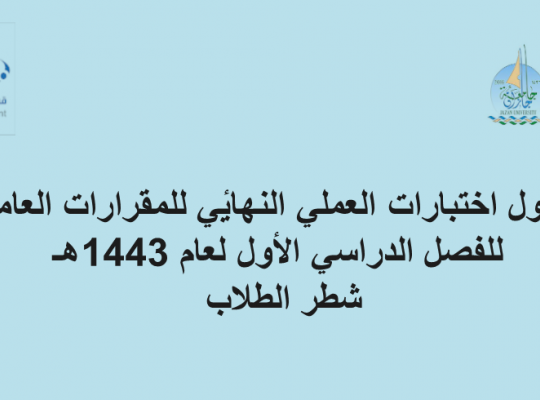 جدول اختبارات العملي النهائي للمقرارات العامة للفصل الدراسي الأول لعام 1443هـ شطر الطلاب