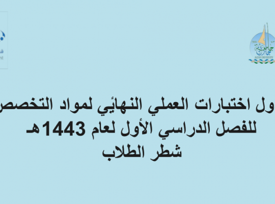 جدول اختبارات العملي النهائي لمواد التخصص للفصل الدراسي الأول لعام 1443هـ -شطر الطلاب