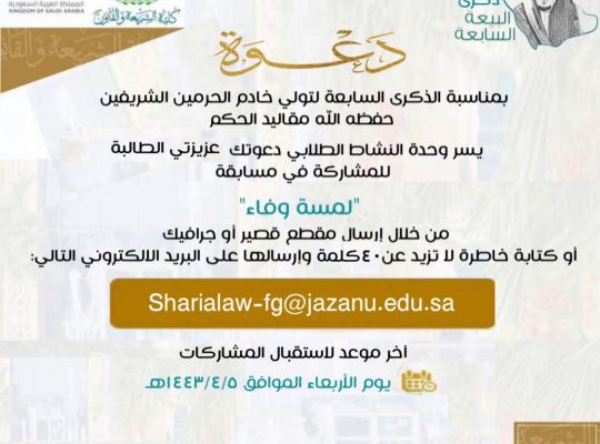 مسابقة لمسة وفاء بمناسبة الذكرى السابعة لتولي خادم الحرمين الشريفين